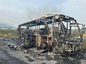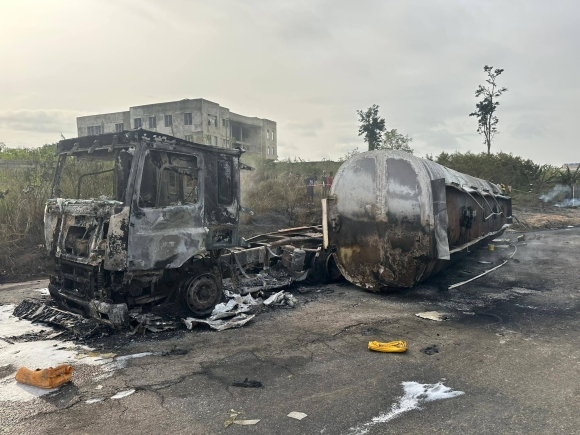 Personnel from the Ghana National Fire Service (GNFS), the Police, the National Ambulance Service, and NADMO responded to the scene to extinguish the blaze and manage the heavy traffic congestion on the Suhum-Nsawam stretch.